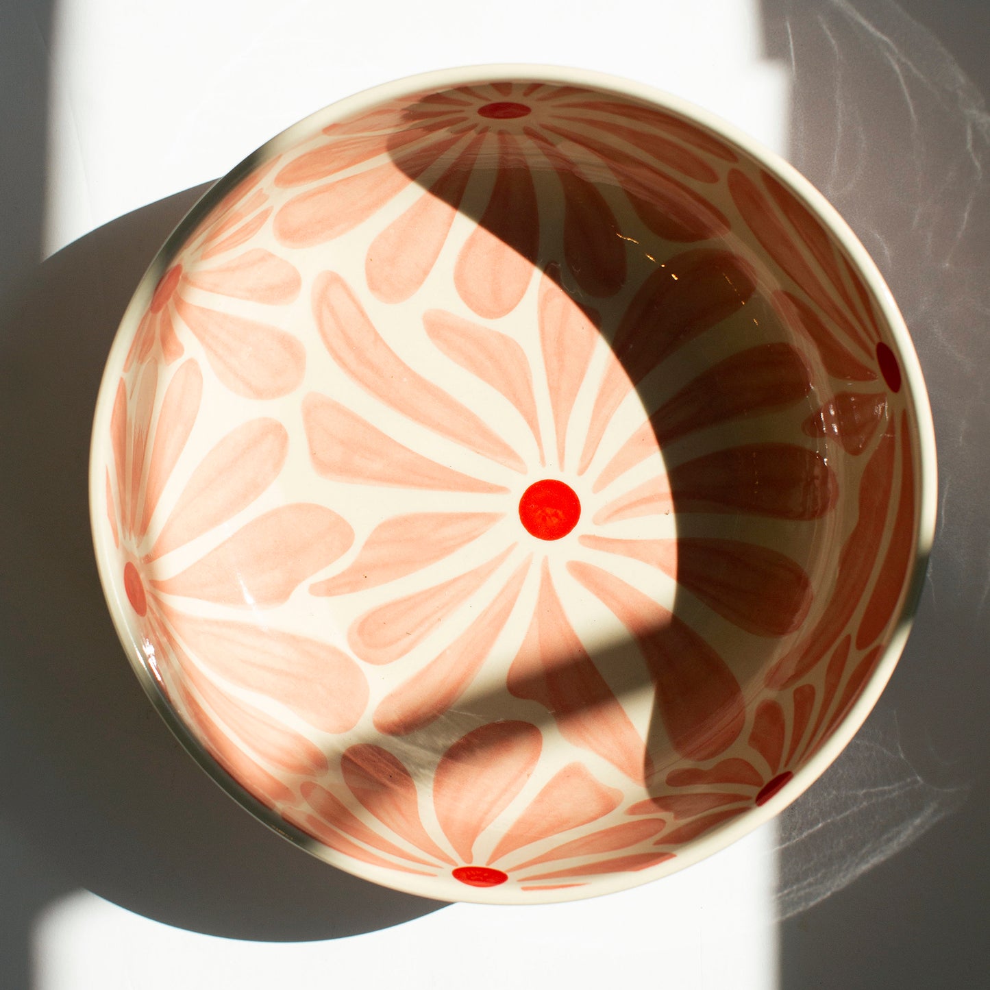 A bold and flowery large stoneware bowl that sits pretty on your counter! It's perfect for fruit, salad, popcorn and more.