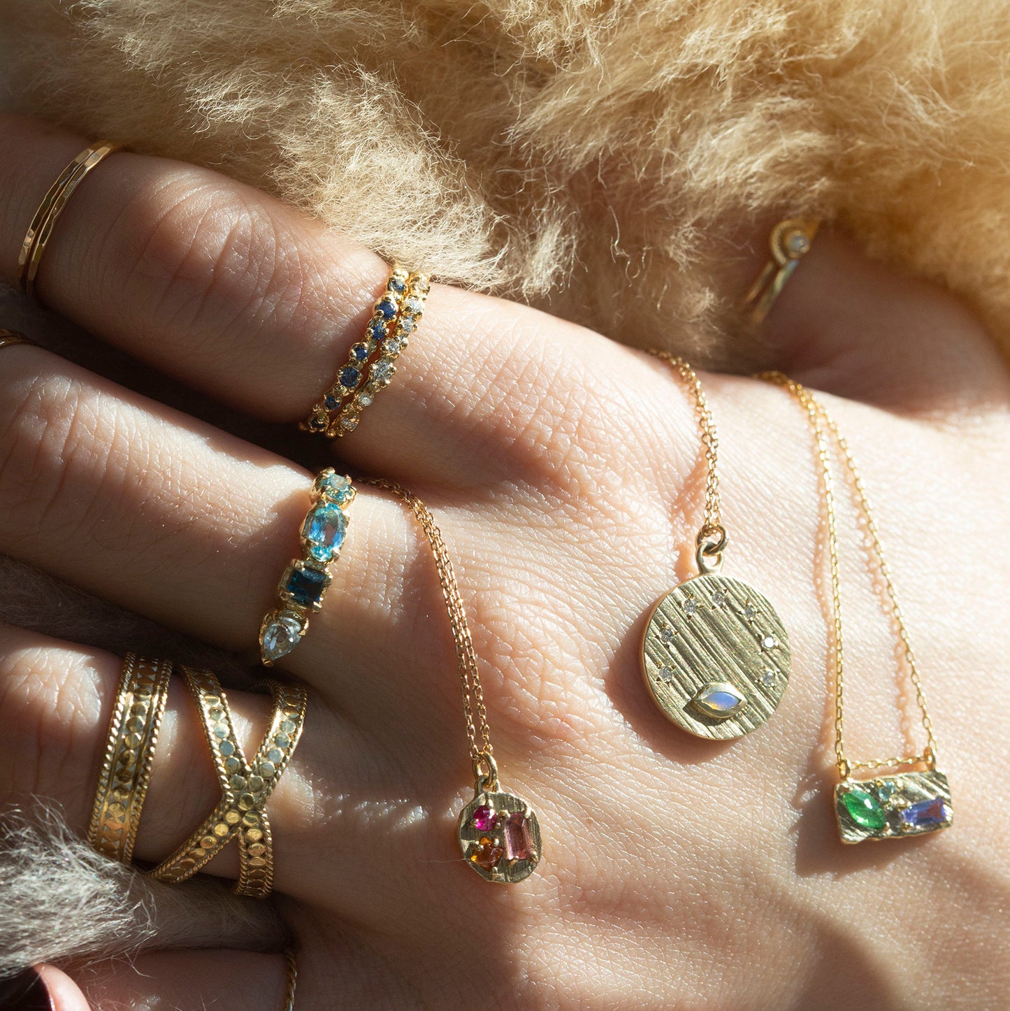 14k Round Gemstone Collage Necklace
