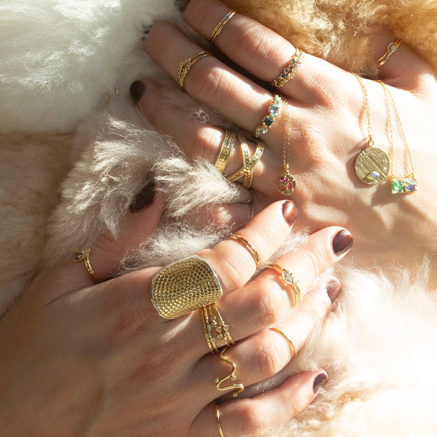 14k Round Gemstone Collage Necklace
