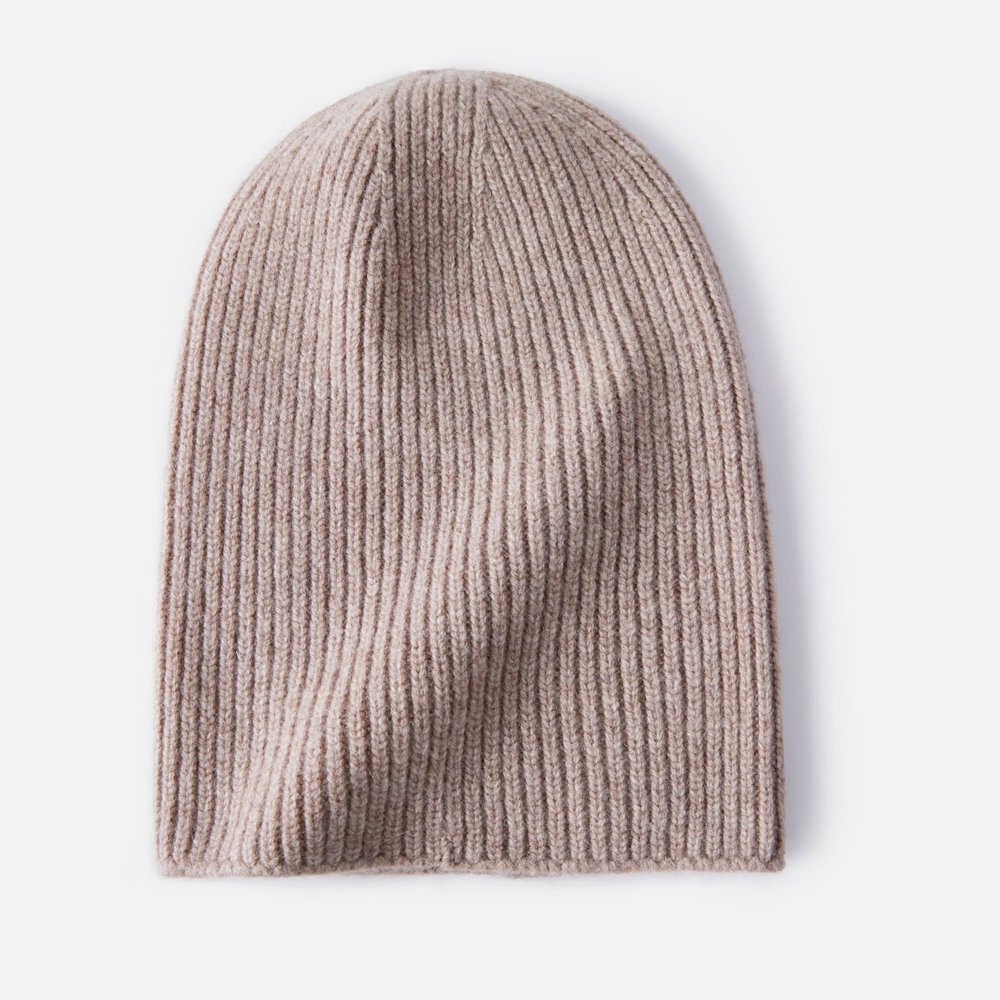 This ultra soft cashmere and wool beanie is a cold weather must-have, featuring a chic rib knit and wide brim.