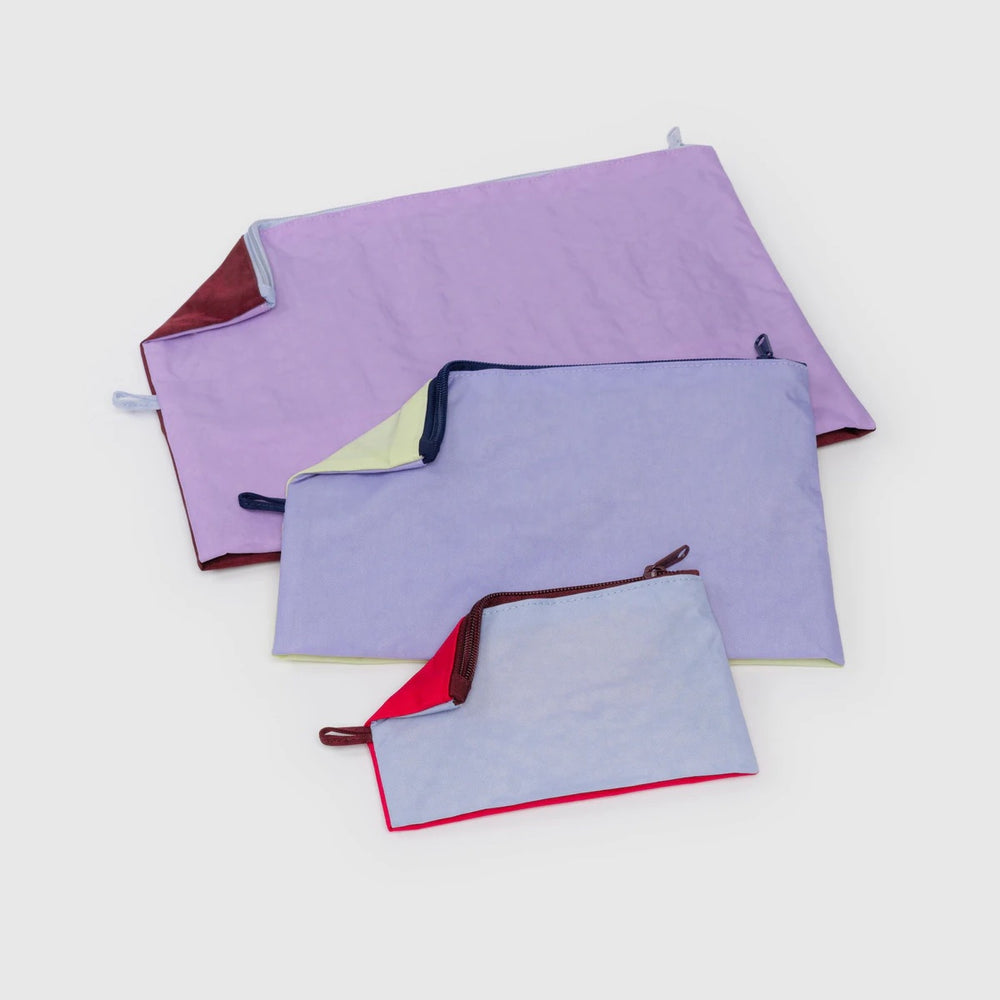 The Go Pouch Set makes it easy to keep your bag neatly packed and organized. Whatever you're toting—coins, cords, or an extra pair of shoes—this set of three all purpose pouches keeps it together. They expand to hold your essentials and lay flat when not in use.