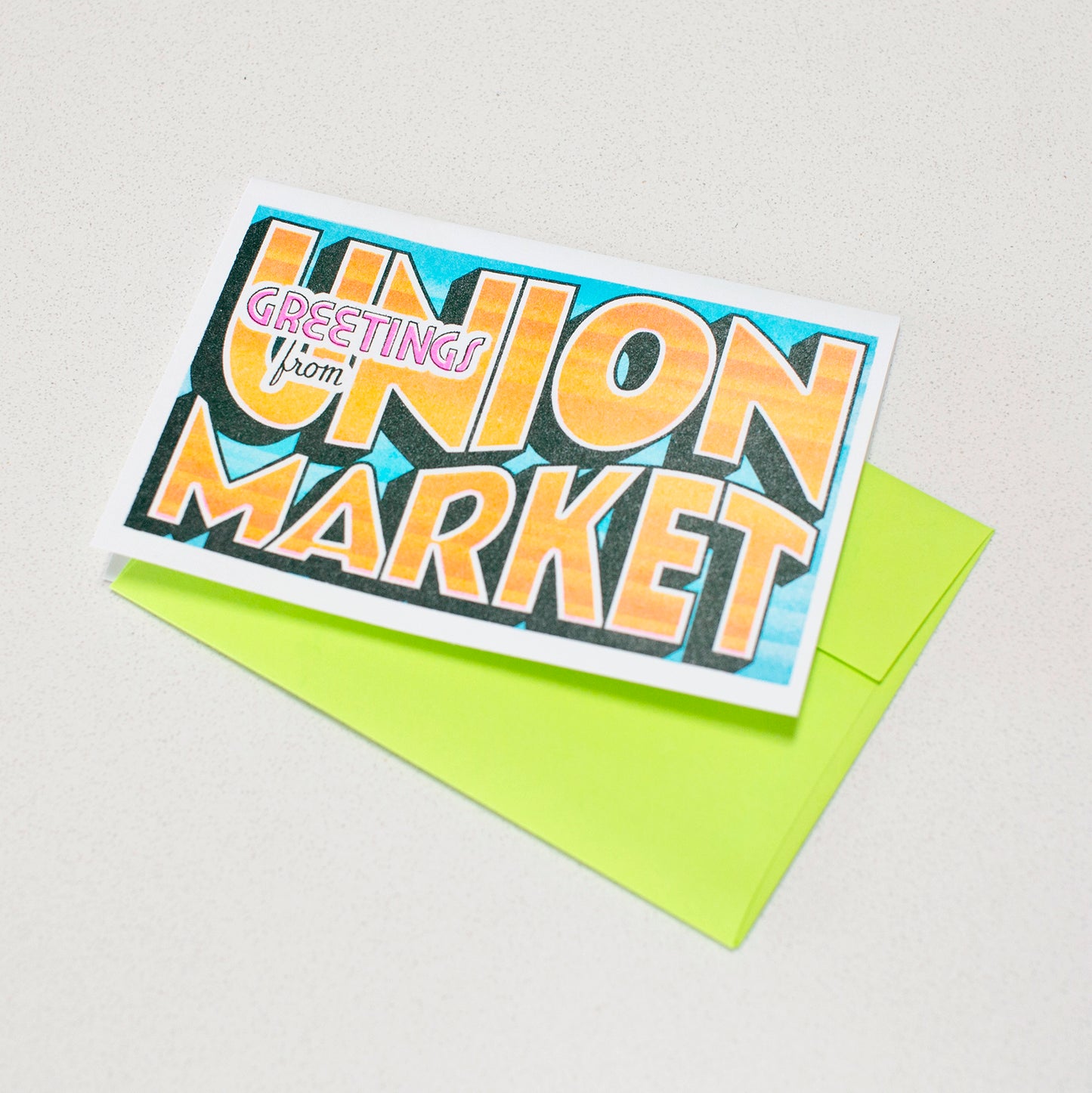 A new modern take on a retro postcard, our Greetings From cards are made exclusively for us.