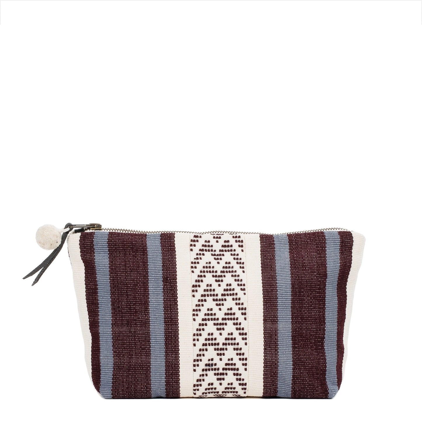 Stylish and versatile, this hand embroidered cosmetic pouch is perfect for everyday or on the go, with a water-resistant lining so it’s easy to clean + maintain.