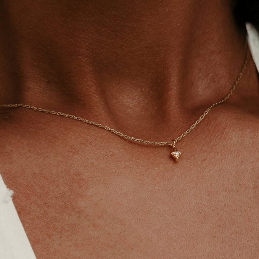 A little piece of the galaxy has been caught and set in this glistening star shaped pendant. Let this necklace be your guiding light!