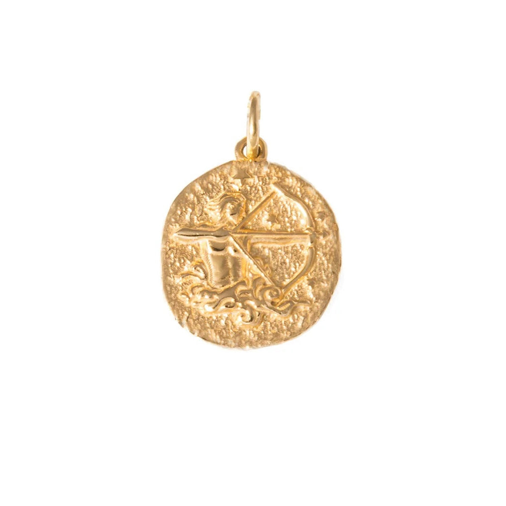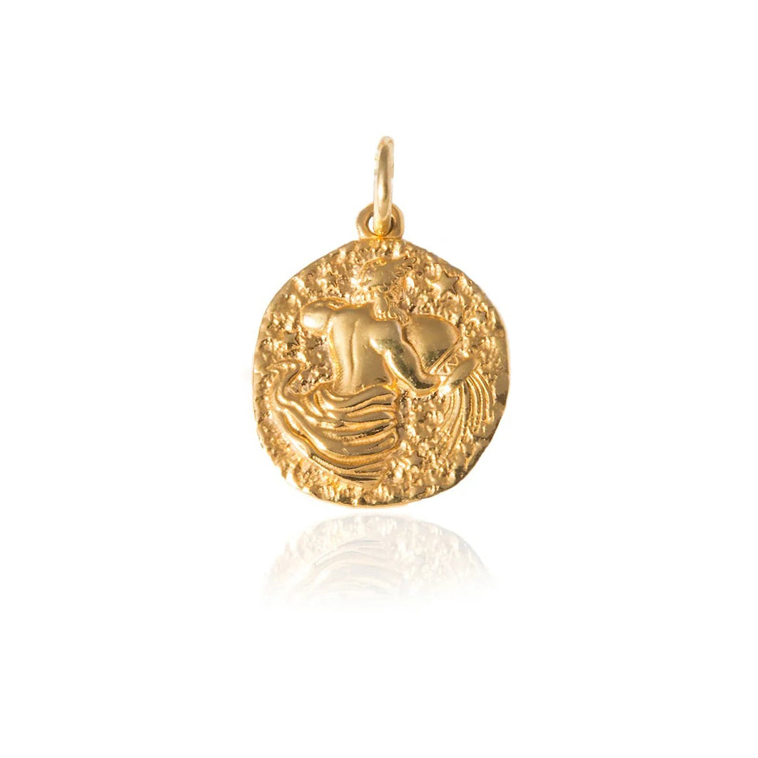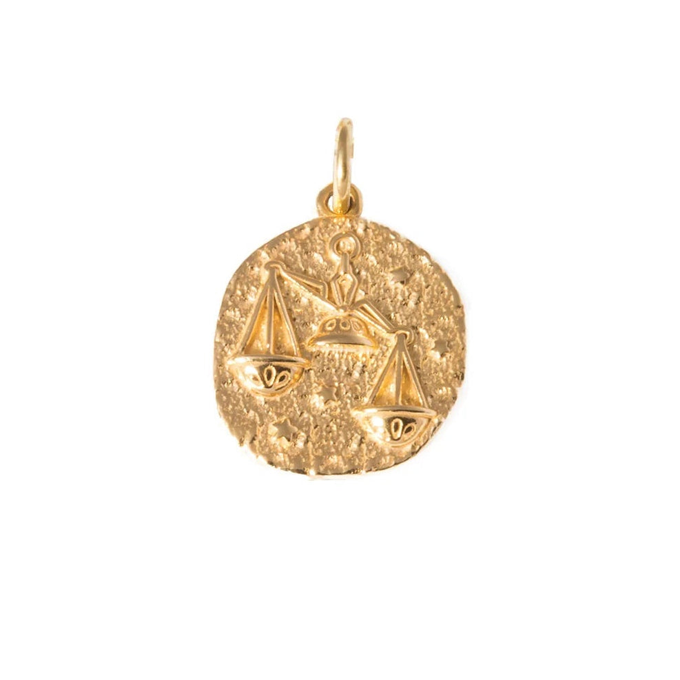 The perfect shimmering birthday gift. This reversible custom charm features a hand drawn zodiac design on one side and the name of the sign embossed on the back.