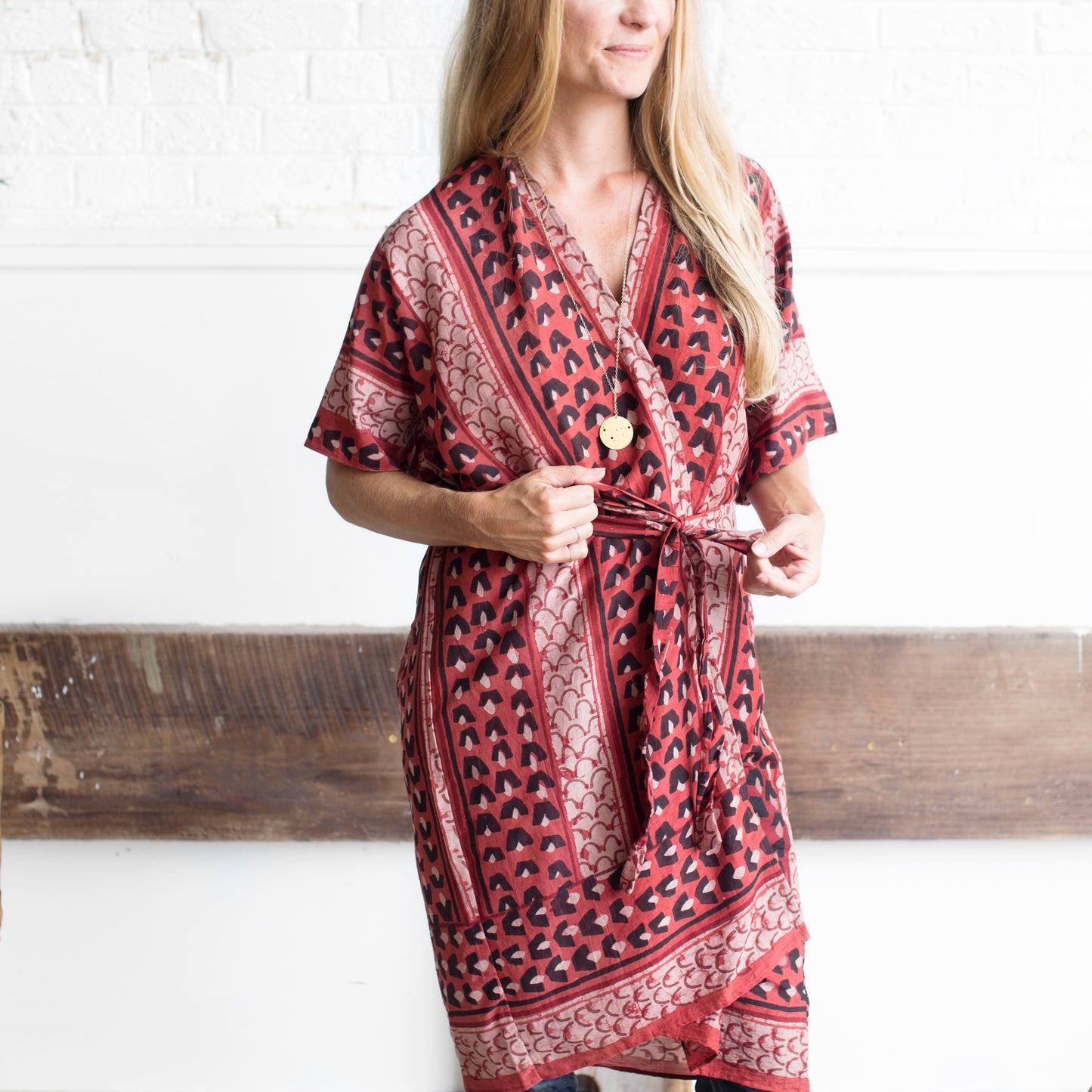 Wear this hand block printed robe over jeans or to the beach as a cover-up. The soft, lightweight fabric makes it a perfect throw-on piece for warm weather.