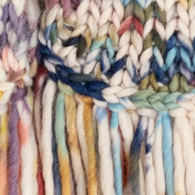 This beautiful handknit scarf is a showstopper. Crafted in Cusco, Peru, by talented women artisans, each scarf is 100% Peruvian highland wool and the yarns are meticulously hand-painted and hand-knitted.