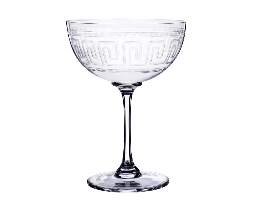 Engraved by hand with remarkable precision, this crystal coupe is an homage to vintage glassware.