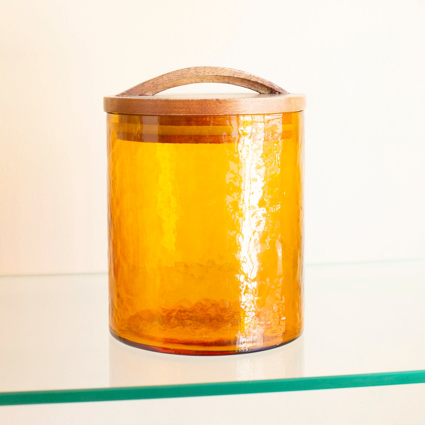 Crafted with care at a woman-owned business, this versatile canister is made from 100% recycled glass and meticulously hammered by hand for a truly unique finish. Perfect for kitchen use or as apothecary storage.