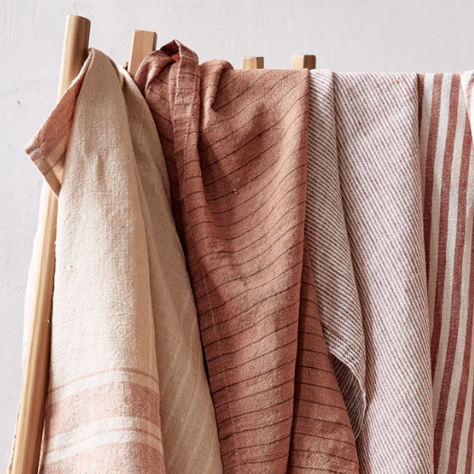 A pure linen jacquard textile that performs double-duty as a large lap napkin or as your favorite dish towel.