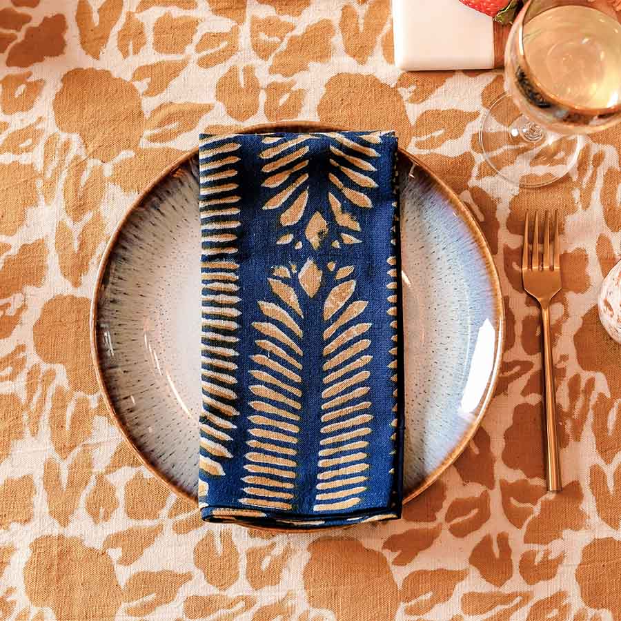 Brighten your tablescape with these beautiful hand block printed napkins.