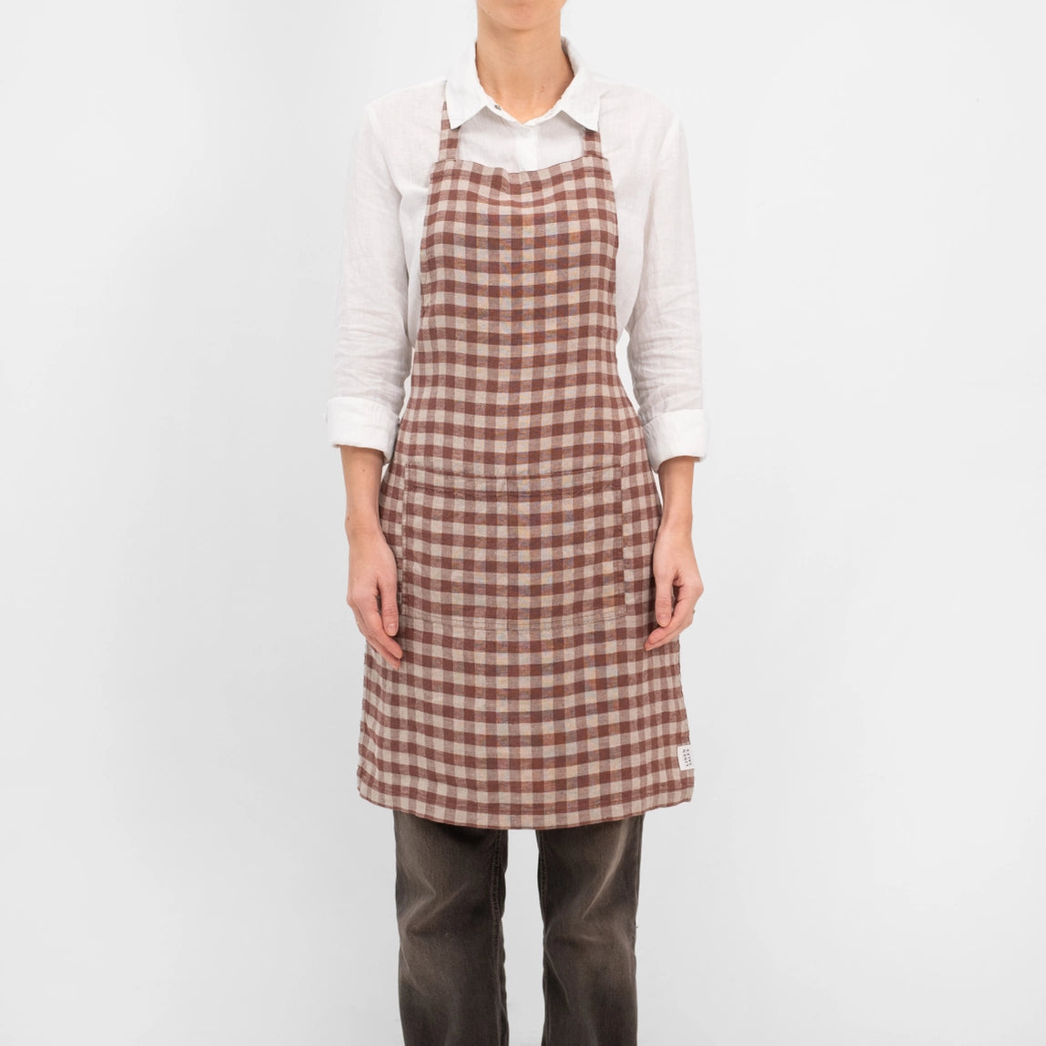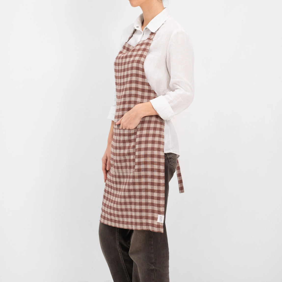 Add Linen Apron in Chocolate Gingham to the cart