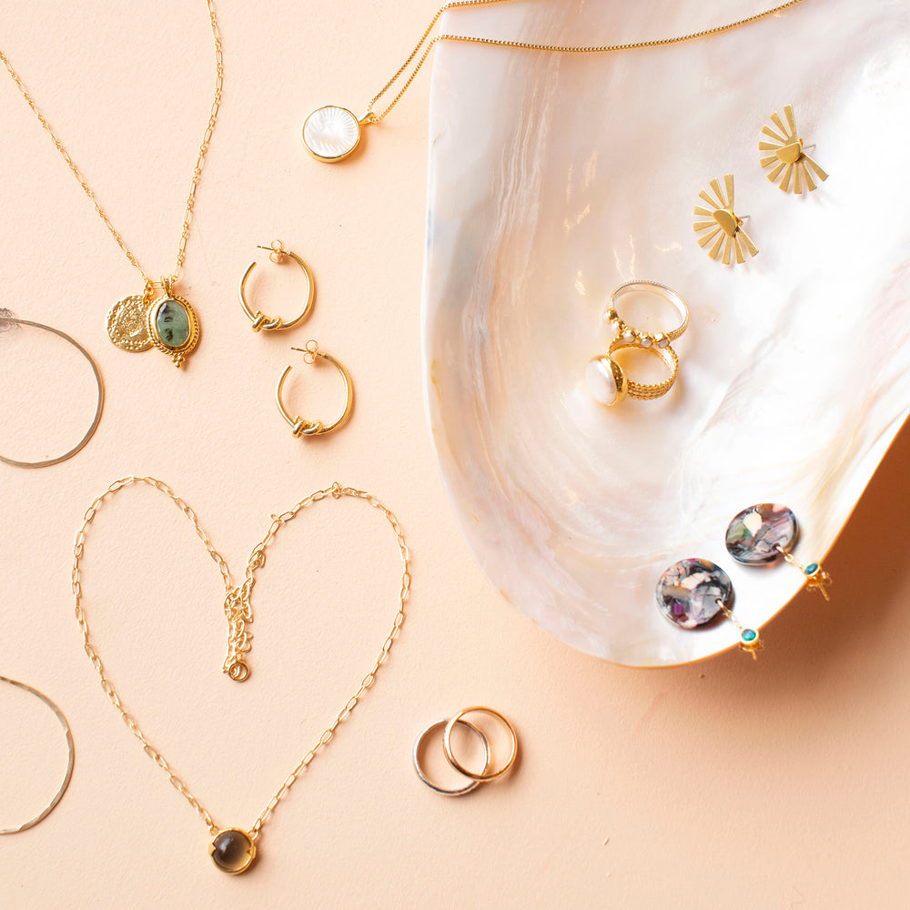 This beautiful charm necklace features a bezel-wrapped emerald pendant and gold coin strung from an 18k gold plated sterling silver chain.