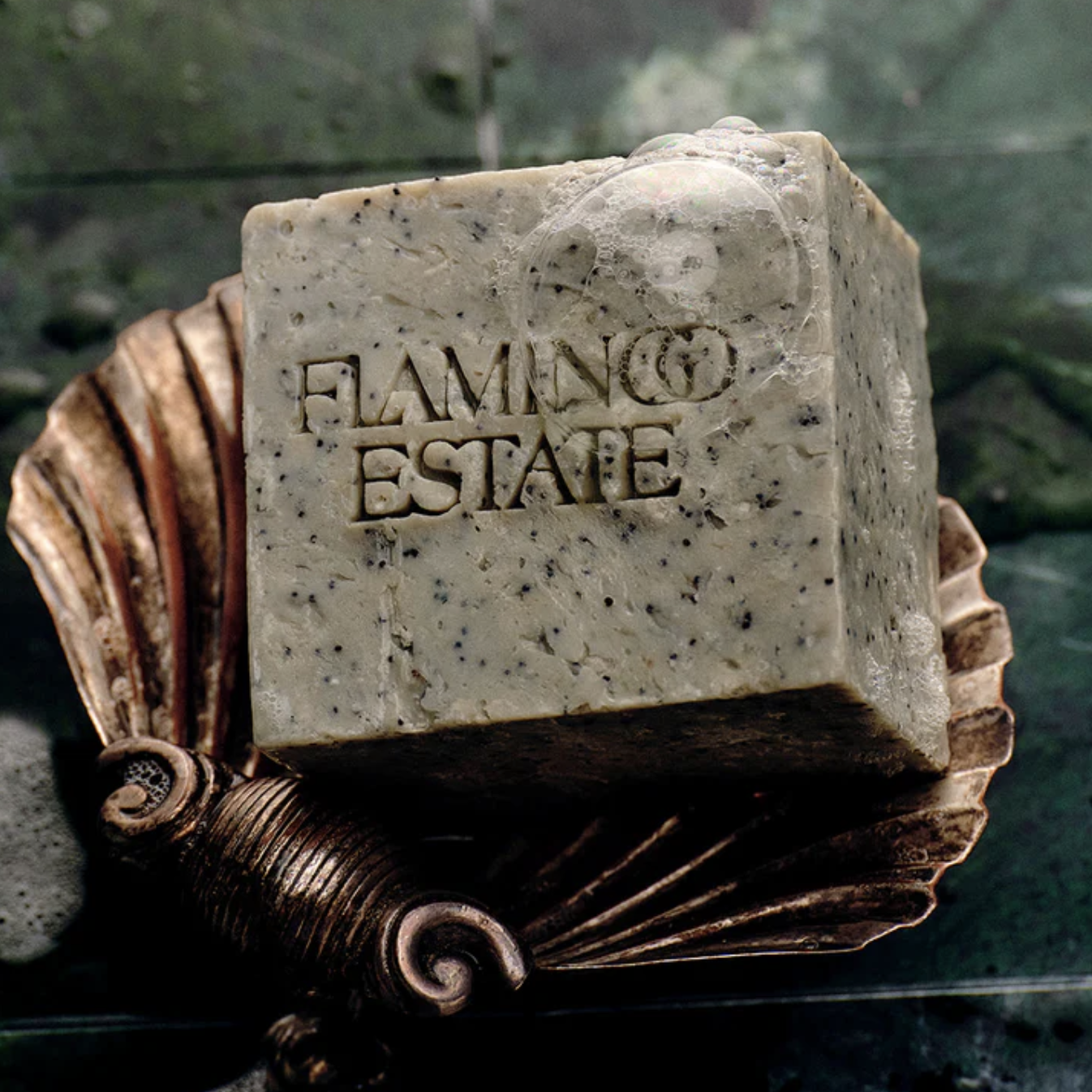 The morning alarm clock we need. Packed full of garden ingredients, everything about this oversized brick of soap is truly made by hand and sourced from a fully traceable collection of growers. One important example is the Babassu Oil, which Flamingo Estate sources as an alternative to Palm Oil. It is harvested on the perimeter of the rainforest in Brazil by local communities. The seeds are gathered by a collective of Indigenous women who use the funds to directly support their families and community.