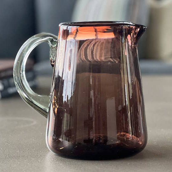 Made from recycled glass bottles, this handblown and hand-crafted pitcher is made by talented artisans in Jalisco, Mexico. Each piece is unique and perfect for serving cool drinks year round.
